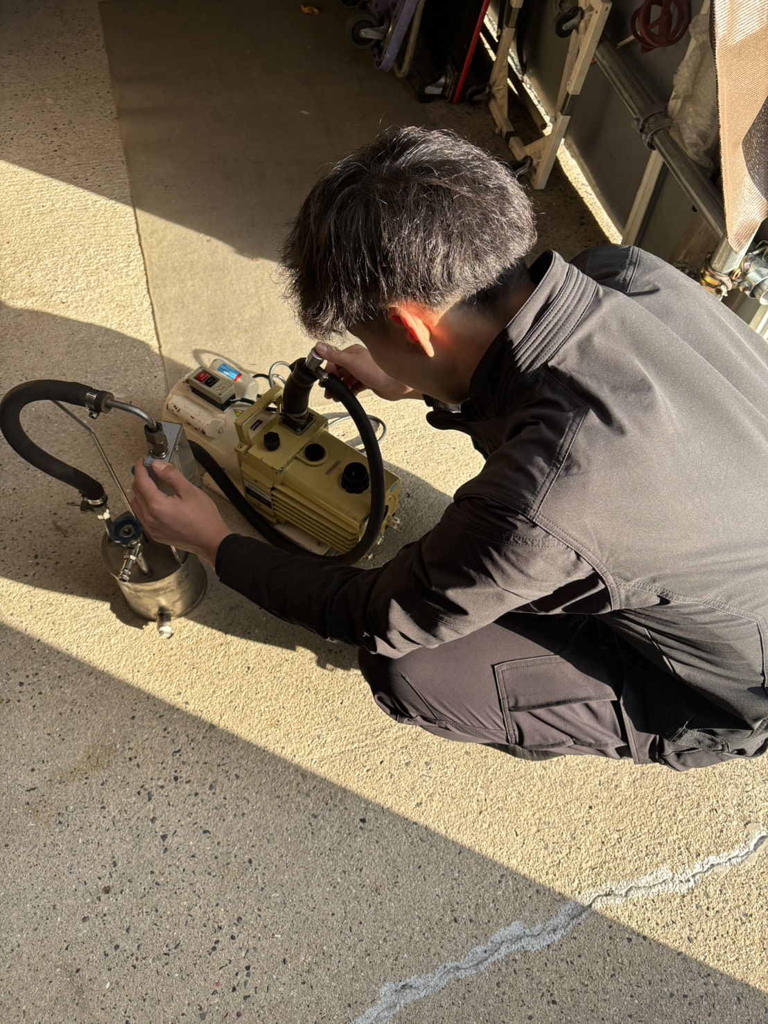 冷温水機のメンテナンスをしています。